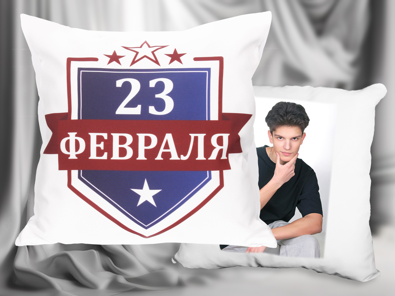 Декоративная подушка «23 февраля» с индивидуальной фотопечатью