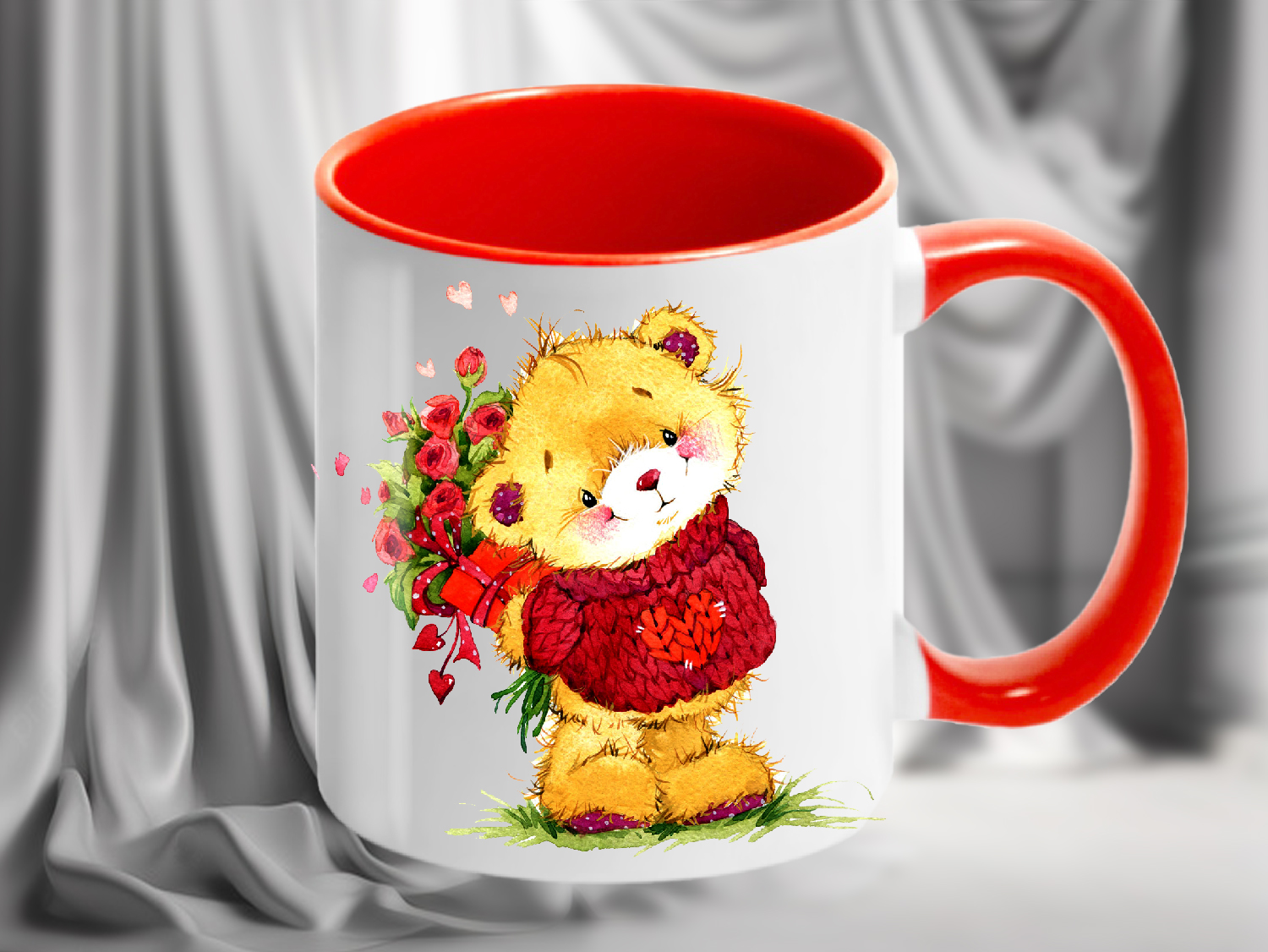 Трогательная кружка с изображением милого медвежонка в красном свитере, держащего букет роз, – это идеальный подарок для особенных моментов. Она станет отличным выбором для романтического признания или просто для поднятия настроения. Дизайн выполнен в теплых тонах, что делает кружку особенно уютной и привлекательной. Этот аксессуар подчеркнет вашу заботу и внимание, даря радость и тепло с каждым использованием. Подарите её любимому человеку, другу или ребенку – такое внимание точно не останется незамеченным.