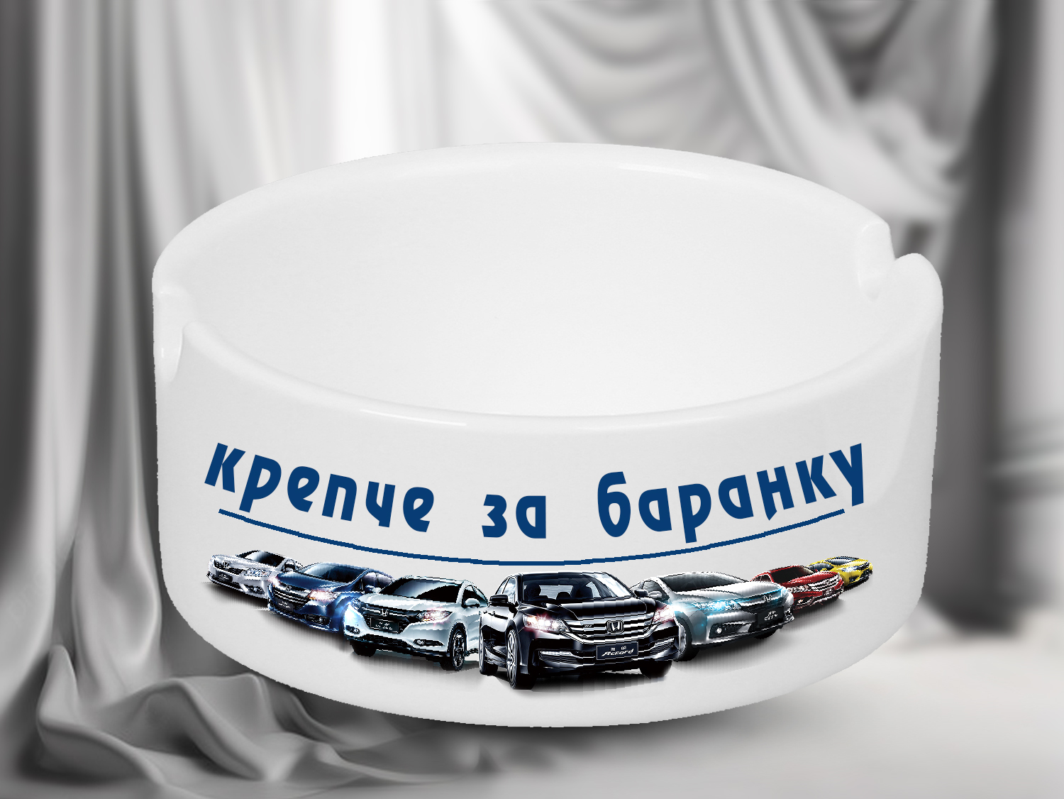 Белая пепельница с ярким изображением современных автомобилей и надписью «Крепче за баранку» — это идеальный аксессуар для автолюбителей и всех, кто проводит много времени за рулем. Она символизирует любовь к скорости, комфорту и управлению своей судьбой, как и автомобилем. Прочная и долговечная, пепельница станет не только полезным, но и стильным элементом интерьера. Её лаконичный дизайн делает её универсальной — она отлично впишется в интерьер машины, офиса или дома. Это не просто аксессуар, а символ увлечения и профессионализма, который станет отличным подарком для друга, коллеги или родственника.