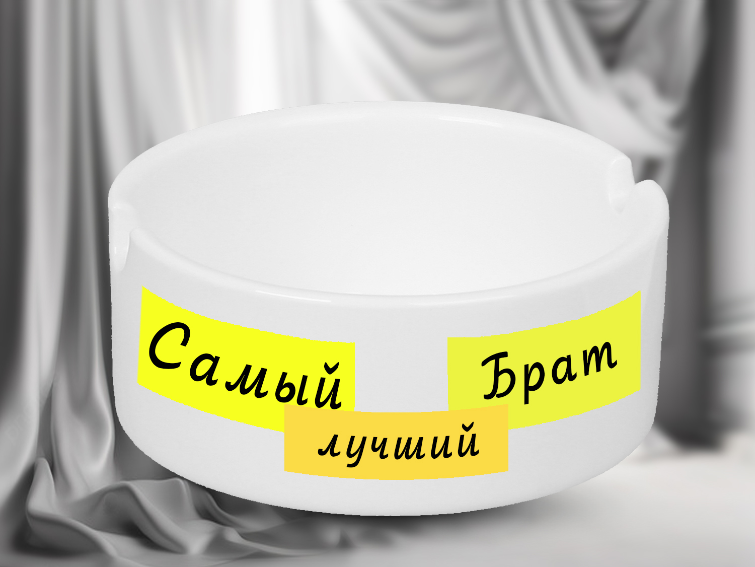 Белая пепельница с яркими наклейками в виде записок и надписью «Самый лучший брат» станет трогательным подарком для вашего близкого человека. Она подчеркивает теплоту и важность семейных отношений, напоминая о поддержке и любви. Пепельница изготовлена из прочного материала, устойчива к повреждениям и легко моется. Её стильный и лаконичный дизайн впишется в любой интерьер, будь то дом или офис. Такой подарок будет напоминать брату о вашей заботе и станет незаменимым аксессуаром в повседневной жизни.
