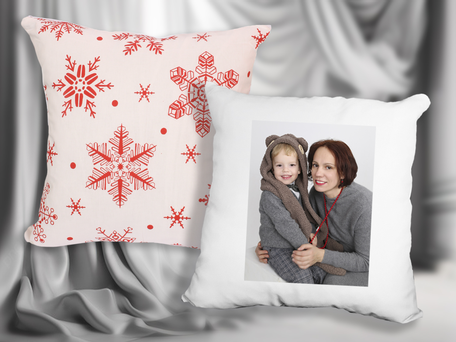 Эта подушка идеально передает атмосферу зимних праздников. На одной стороне изображены изящные красные снежинки, словно вырезанные из тонкой бумаги, которые создают ощущение легкости и уюта. Белый фон подчеркивает изысканность узора, добавляя нотки зимней свежести. Вторая сторона украшена трогательной фотографией мамы и ребенка, одетых в уютные серые наряды. Их теплые улыбки и нежное объятие создают впечатление настоящей семейной идиллии. Эта подушка станет прекрасным подарком для тех, кто хочет сохранить теплые воспоминания о зимних вечерах в кругу семьи.