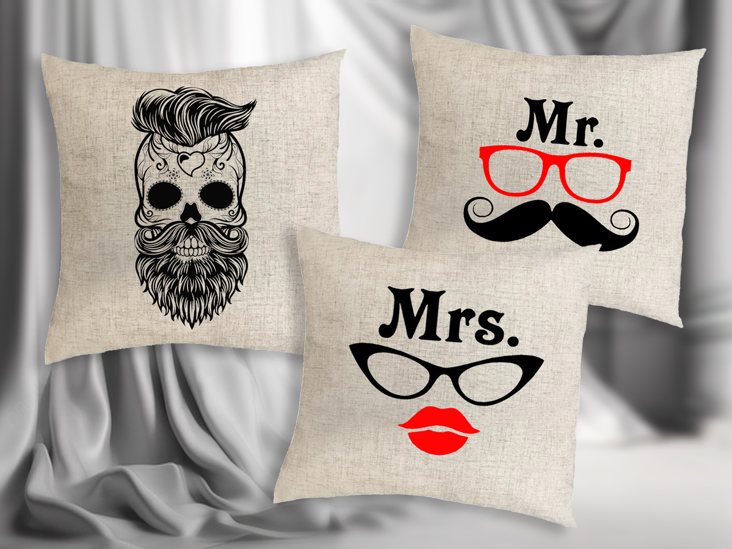 Эти парные подушки — стильный и забавный элемент интерьера. Элегантные принты в виде черепа с бородой, очков, усов и губ радуют своей оригинальностью. Они идеально подойдут для молодоженов или пар, которые ценят юмор и необычные акценты в доме. Эти подушки не только украсят пространство, но и подчеркнут индивидуальность владельцев.