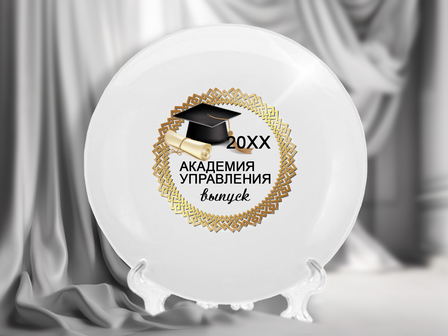 Эта тарелка с символикой Академии управления и золотыми элементами — идеальный памятный сувенир для выпускников. Важное событие, связанное с окончанием учебы, заслуживает особого внимания, и такая тарелка станет отличным символом завершения учебного пути. Она может быть использована как подарок для выпускников, преподавателей или в качестве корпоративного сувенира. Керамическая основа и стильный дизайн делают тарелку элегантным и долговечным аксессуаром, который будет напоминать о значимых достижениях.