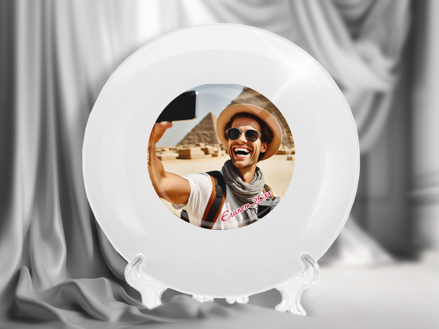 Эта тарелка с изображением туриста на фоне пирамид — идеальный способ сохранить воспоминания о путешествиях. Яркое фото и стильный дизайн делают эту тарелку прекрасным декоративным дополнением к вашему дому или офису. Она станет отличным подарком для тех, кто любит приключения и стремится запечатлеть моменты своих поездок. Керамическая основа и качественное изображение гарантируют, что тарелка будет радовать своим внешним видом долгие годы. Это не просто сувенир, а настоящий символ ваших ярких путешествий и новых открытий.