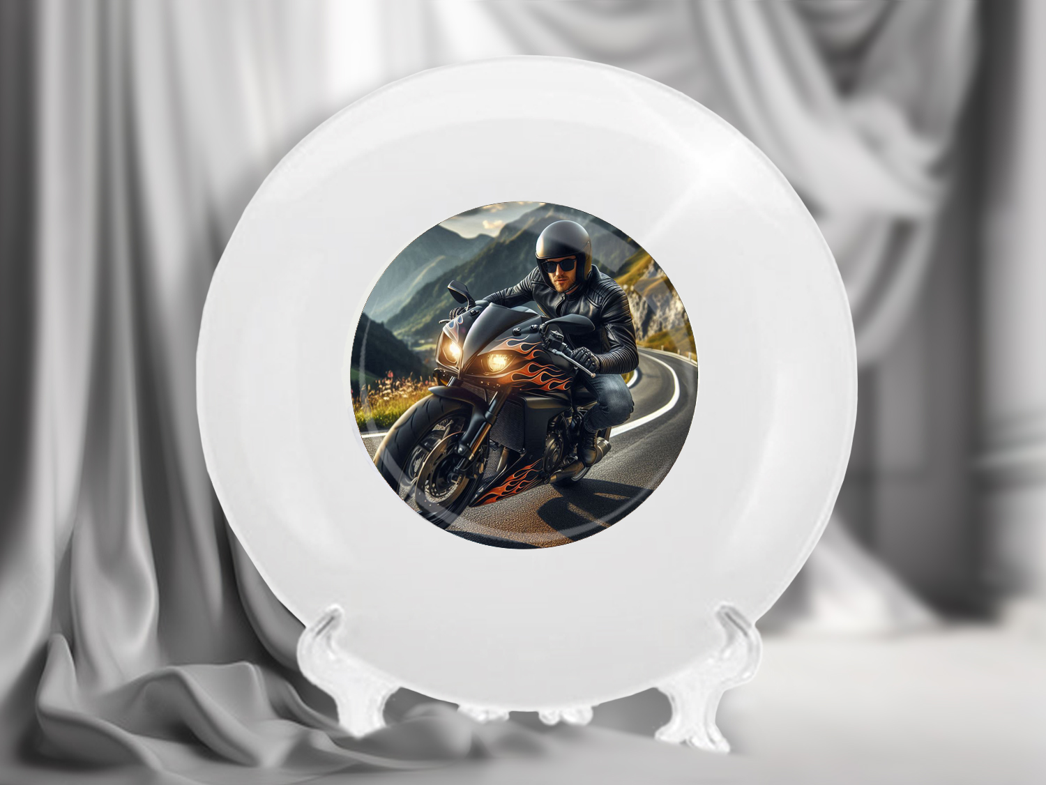 Эта тарелка с изображением мотоциклиста, мчащегося по живописной горной дороге, идеально подойдет для любителей скорости и свободы. Изображение передает дух приключений и страсть к мотоциклам, делая эту тарелку не только стильным сувениром, но и символом жажды свободы и покорения дорог. Такой подарок будет отличным вариантом для байкеров и тех, кто ценит активный образ жизни.