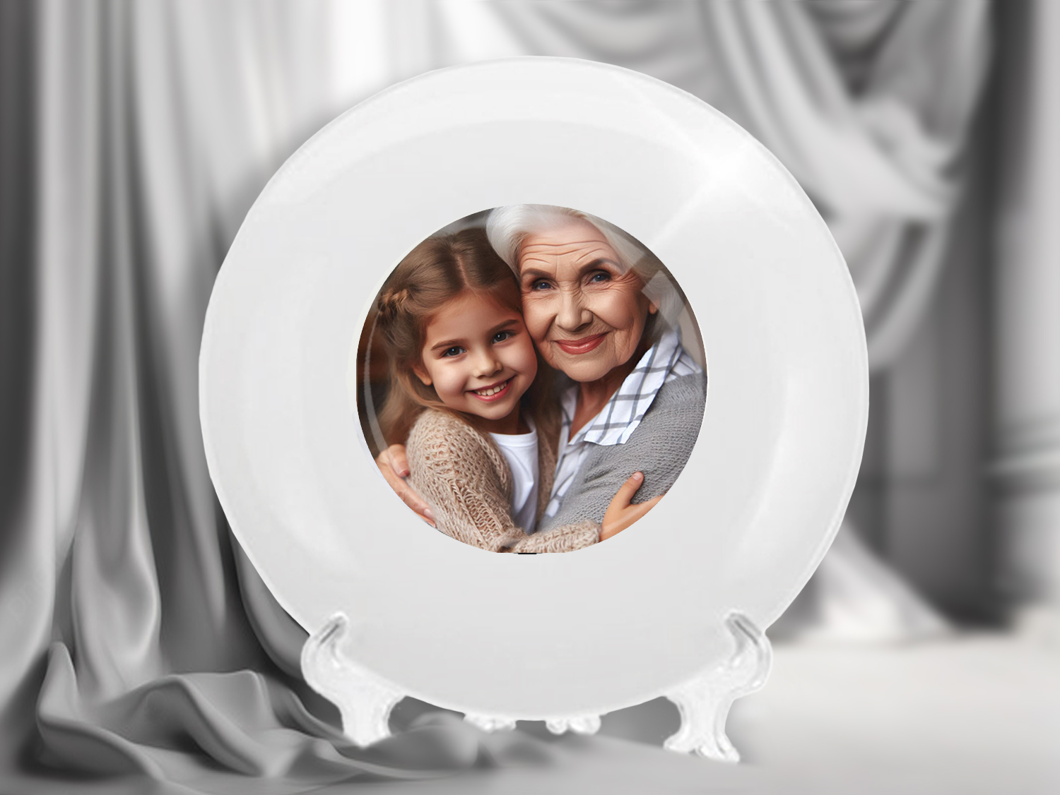 Тарелка с изображением бабушки и внучки, обнимающихся с любовью, символизирует семейные ценности, тепло и заботу. Такой сувенир станет отличным подарком для бабушки, который будет напоминать ей о самых теплых моментах, проведенных с семьей. Это прекрасный способ сохранить память о любви и близости поколений.