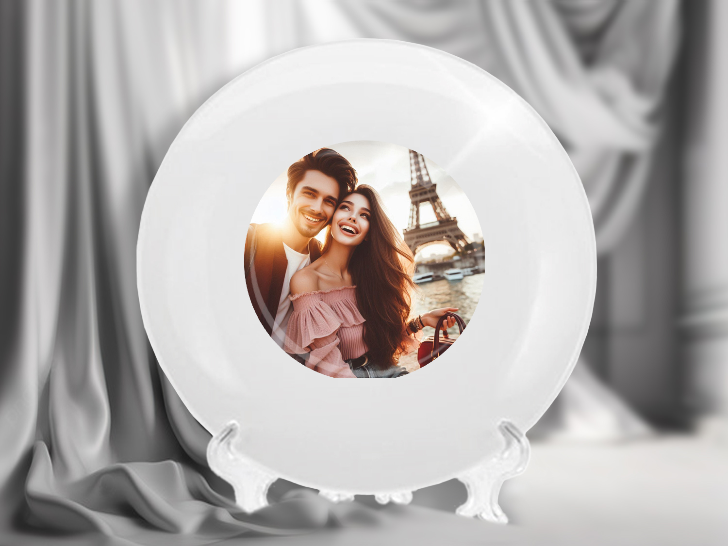 Тарелка с изображением счастливой пары на фоне Эйфелевой башни – символ романтики и незабываемых моментов. Такой сувенир станет отличным подарком для влюбленных или тех, кто мечтает о поездке в Париж. Это также идеальный способ запечатлеть памятные моменты из путешествия в город любви.
